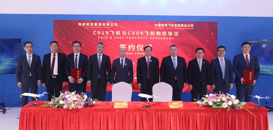2024年11月12日,在第十五屆中國國際航空航天博覽會(huì )上,海航航空集團與中國商飛簽署60架C919飛機確認訂單和40架C909飛機確認訂單。