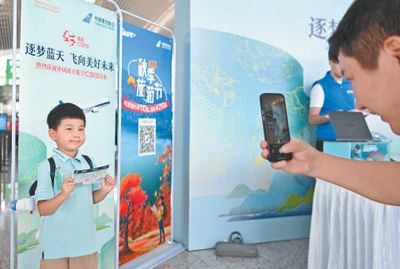 乘坐南航C919飛機首航航班的旅客在廣州白云國際機場(chǎng)拍照留念。新華社記者 鄧華攝