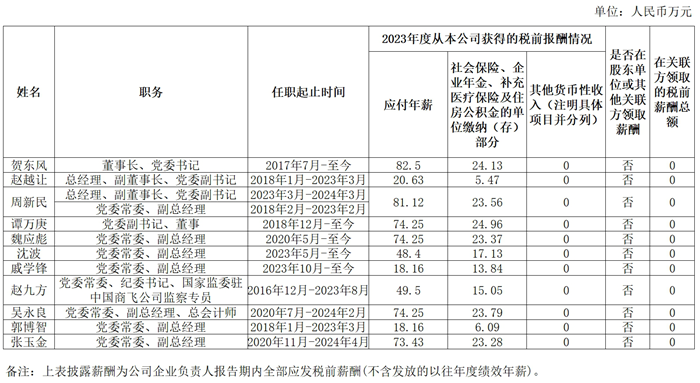中國商用飛機有限責任公司企業(yè)負責人2023年度薪酬情況