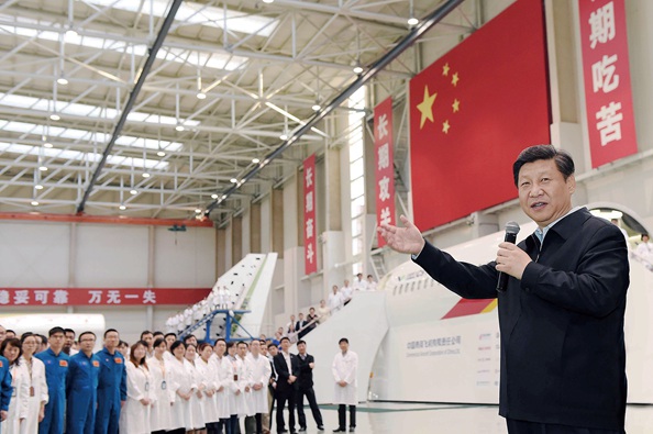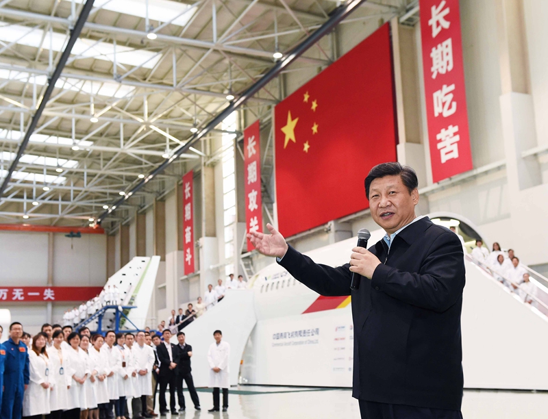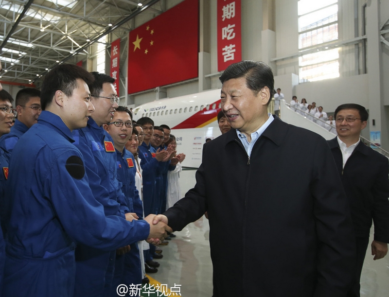 2007年9月20日,在即將打響攻堅戰的總裝廠(chǎng)房里,在“綠皮”的ARJ21飛機前,習近平講到,新支線(xiàn)飛機項目承載著(zhù)黨和人民的重托,承載著(zhù)中國民航產(chǎn)業(yè)發(fā)展的歷史使命?!靶轮Ь€(xiàn)飛機項目的立項建設,充分體現了中華民族的自強自立,充分顯示了我國在航空領(lǐng)域占有一席之地的決心。要盡最大努力,盡最大可能,建設好這個(gè)項目,努力為我國航空戰略的發(fā)展多做貢獻?!保ㄕ孕氯A社文章)